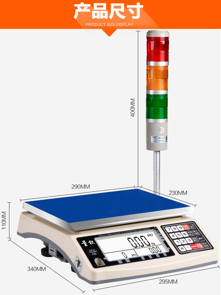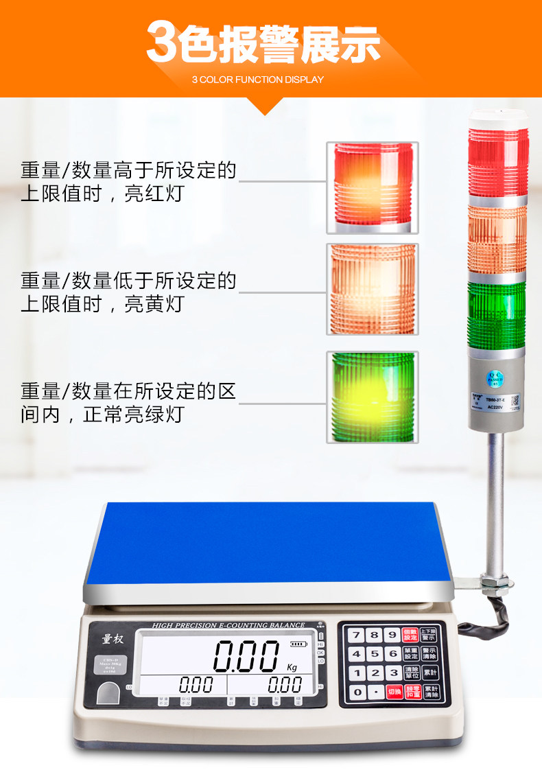 Weight upper and lower limit alarm electronic scale Three-color alarm lampstand scale Quantitative packaging factory electronic scale 30kg15kg