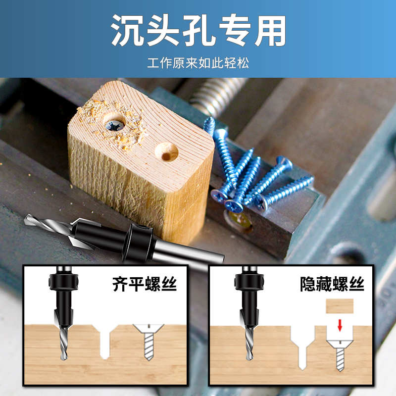 Countersinker drill bit woodworking countersinking head salad drill twist drill screw taper hole flashlight drill hole cutter tool complete
