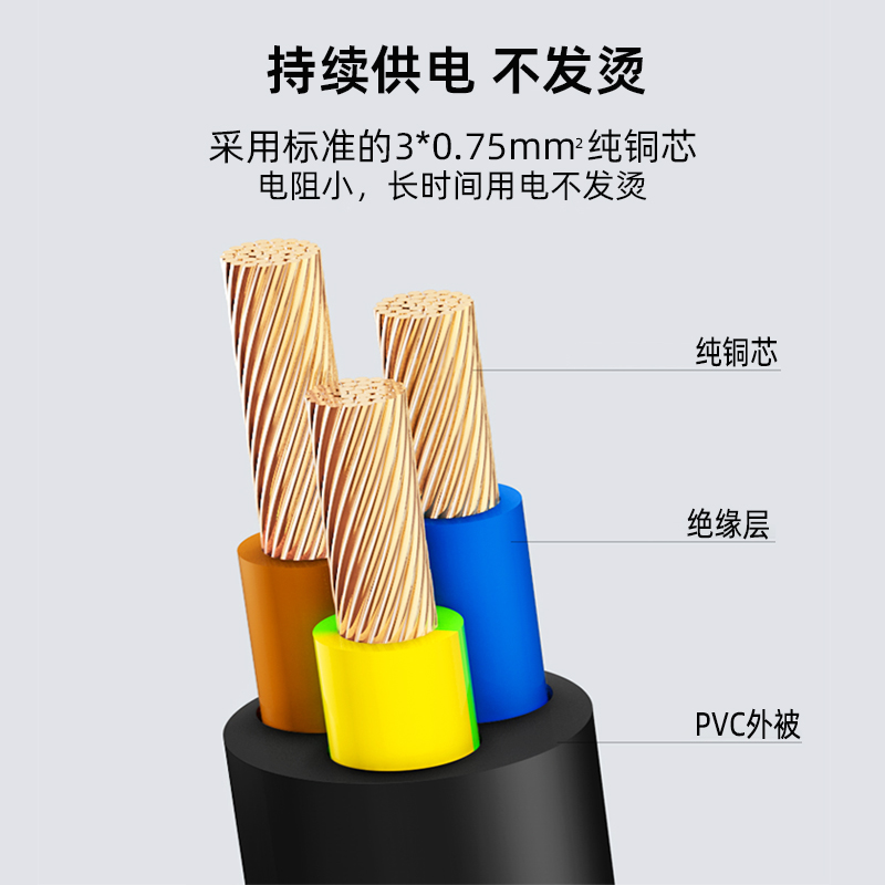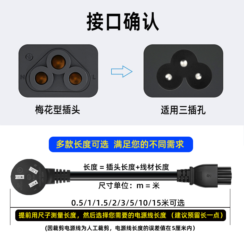 Notebook power cord three-hole plum blossom 3 core computer monitor Lenovo HP Dell Asus charging cable plug