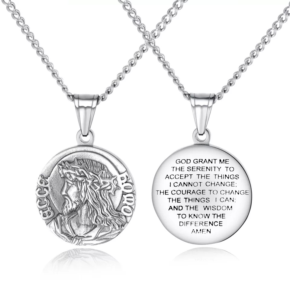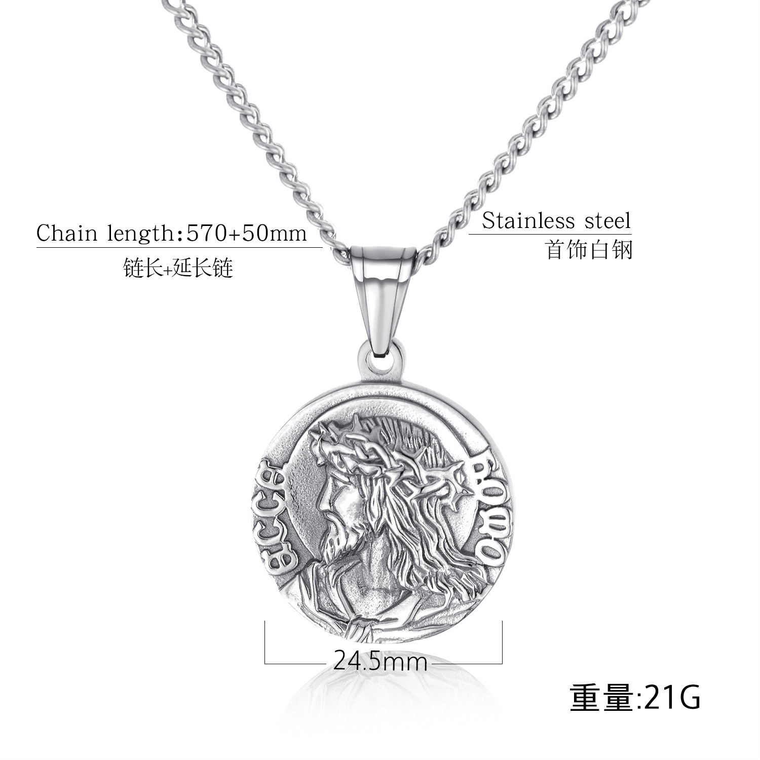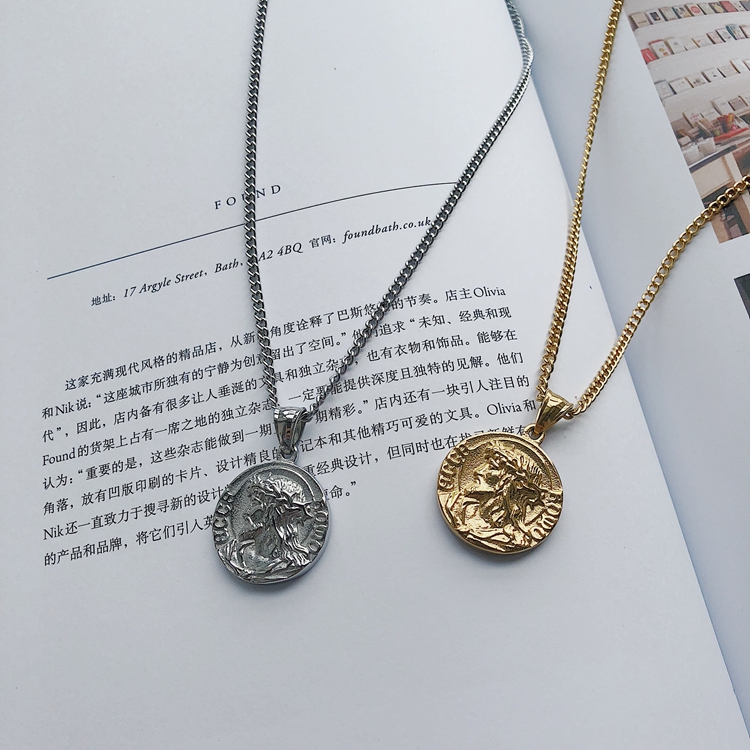 Korean pendant men's necklace European and American ins trend silver lucky coin head metal pendant men's matching accessories