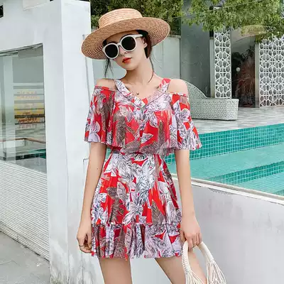 Swimsuit female conservative one-piece skirt flat angle large size to cover the belly and show thin and fat mm200 kg student 2020 new hot spring