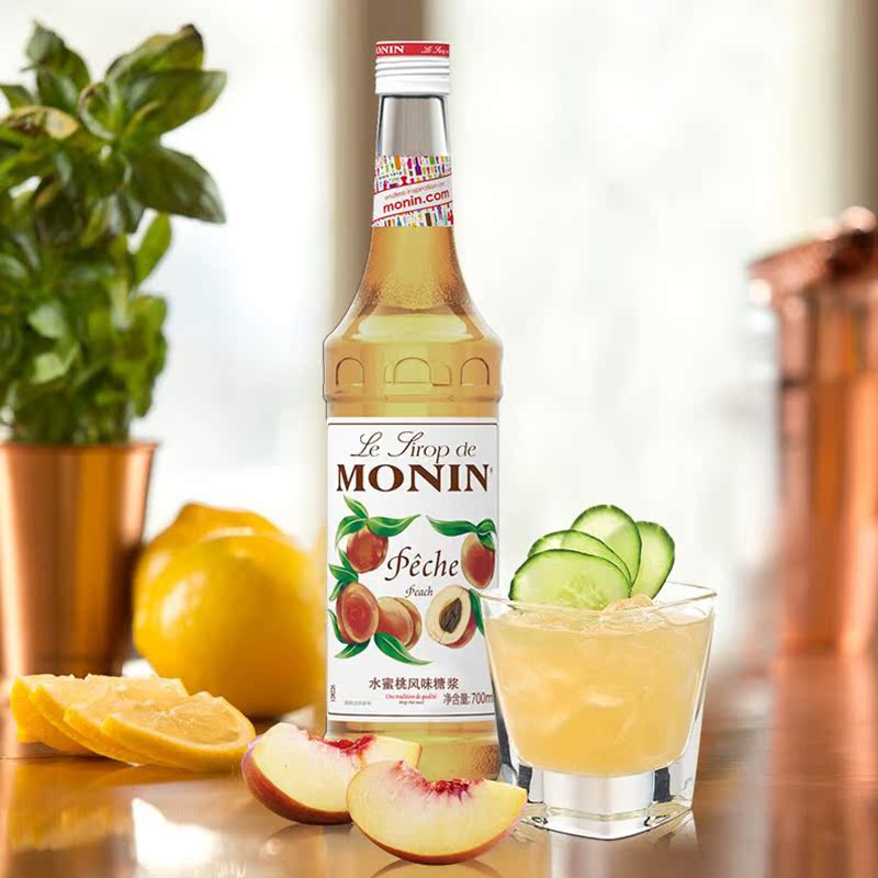 monin morin water honey peach peach flavored taste cocktail drink juice fruit dew syrup 700ml