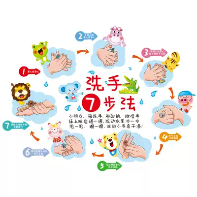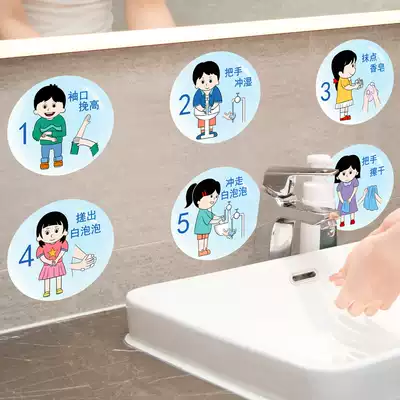 Seven steps to wash your hands and wash your face steps Tile wall stickers Self-adhesive kindergarten powder room waterproof decoration children stickers