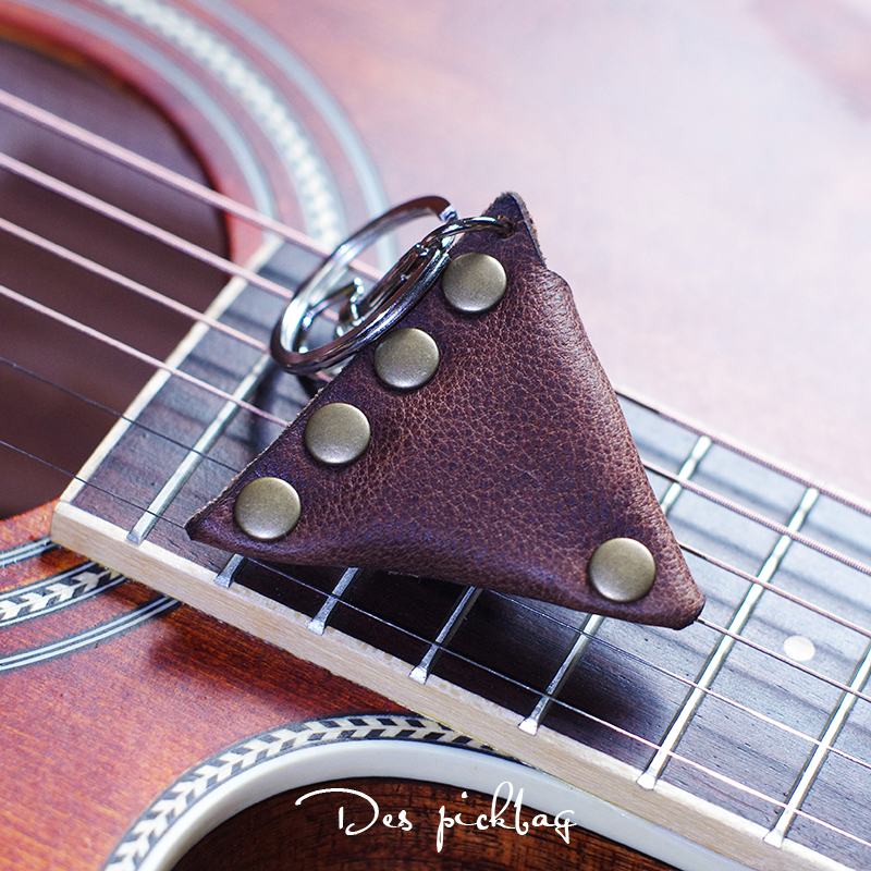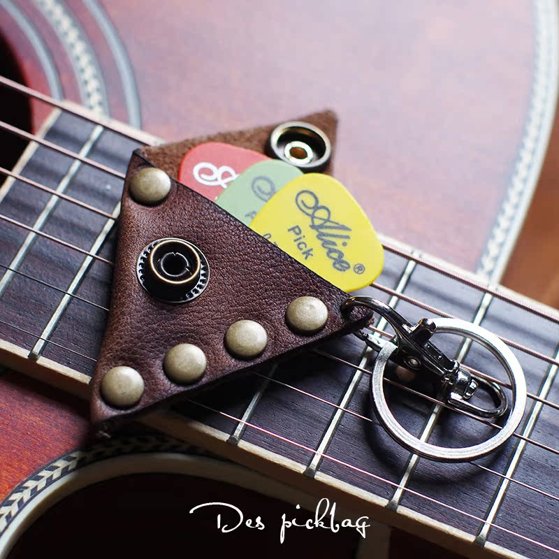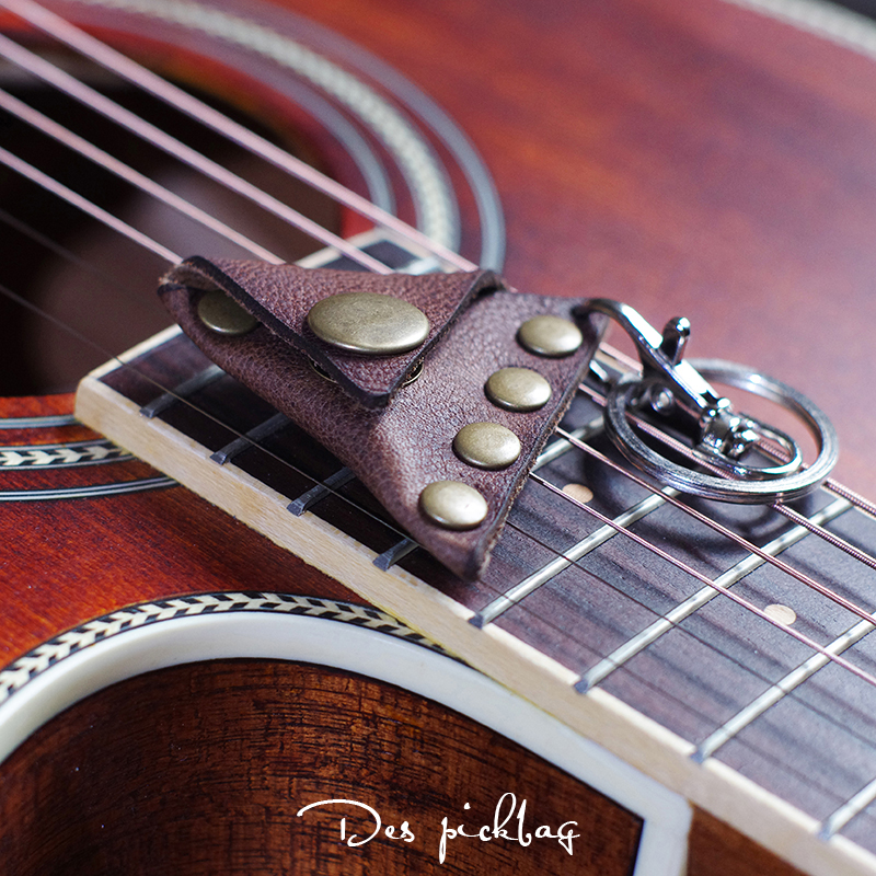 DES NEW Original Handmade Vintage Oil Wax Cowhide Rock Old Leather Guitar Paddle Bag Clip Keychain Ring