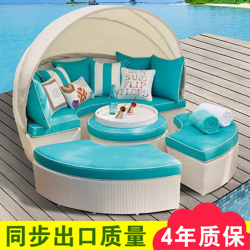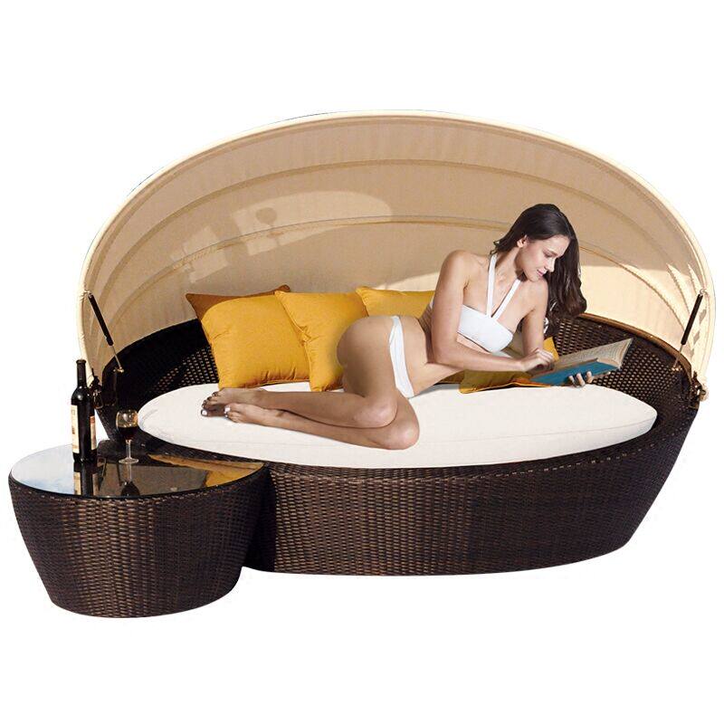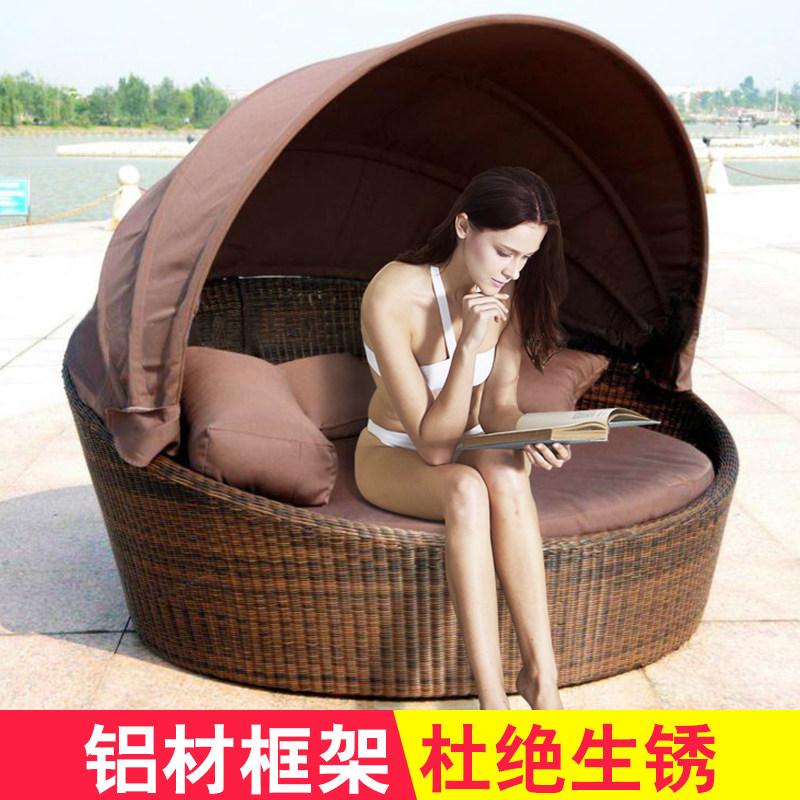 Outdoor rattan-made round bed swimming pool Lying Bed Couch With Puffy Chair Waterproof Sunscreen Open-air Balcony Casual Rattan Deckchair
