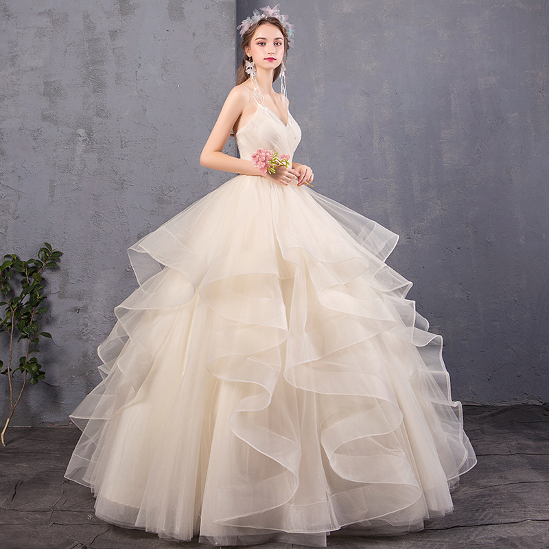 Suspender wedding dress 2021 new temperament bride small French style light and simple neat winter pregnant woman Mori super fairy