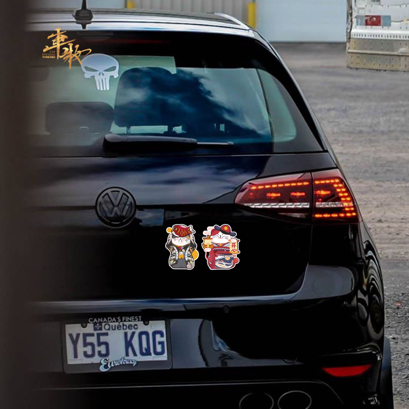 Charred Cat Cute Cartoon Kitty creative personality Custom text Ping An car Reflective Car Stickler Web Red Tides