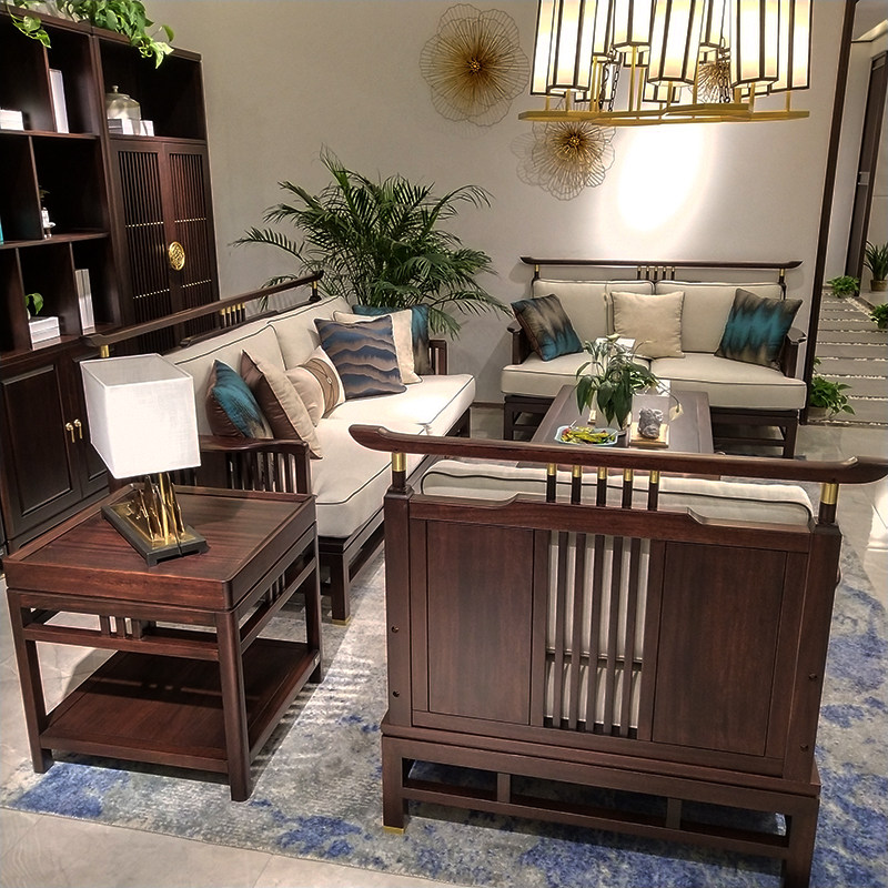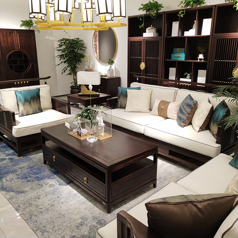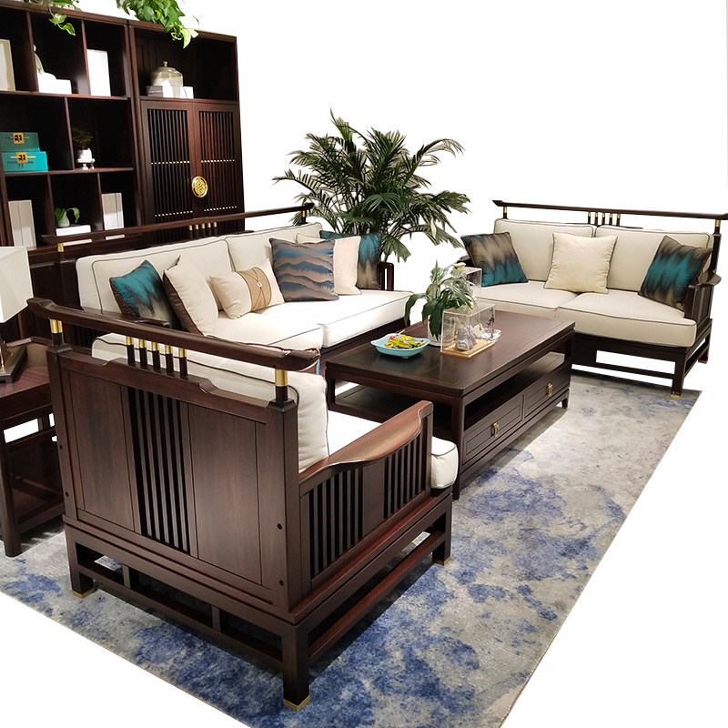 New Chinese style sofa combination Modern Chinese style hotel villa living room Zen Chinese style solid wood sofa furniture customization