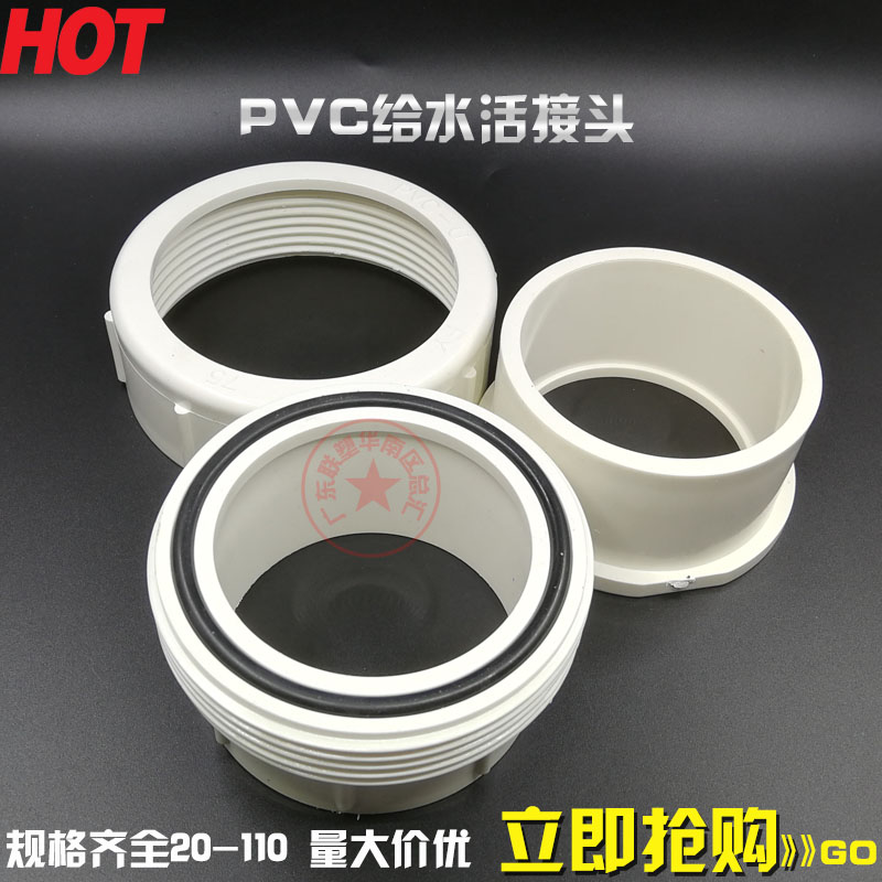 PVC-U white water supply live joint 75 90 110 activity direct head 2 inch and a 3 inch 4 inch glue connection