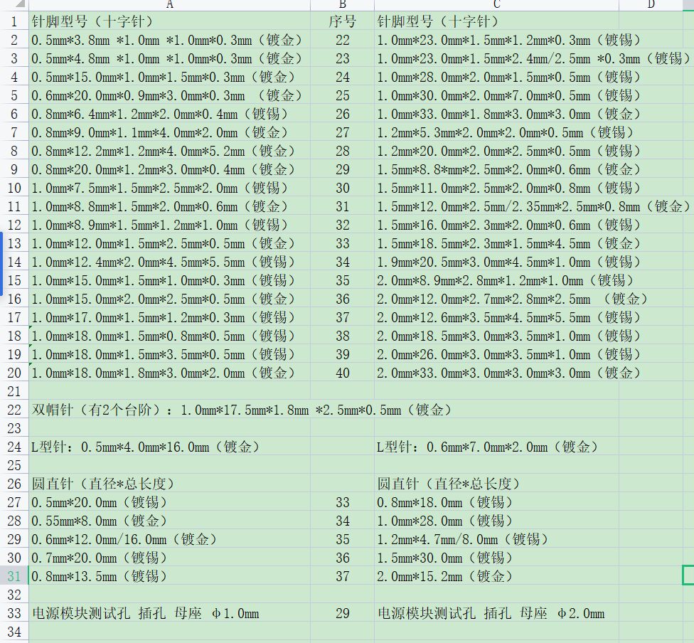 Module Power Tinned Stitch Pin Pin Pin 1 0mm * 23 0mm * 1 8mm 100 Package