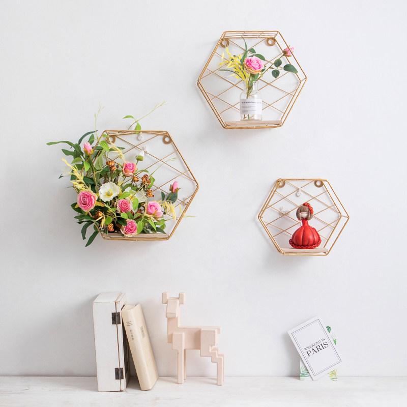 Creative Nordic fake flower simulation flower wall decoration living room sofa background wall dining table wall hanging golden iron ornaments