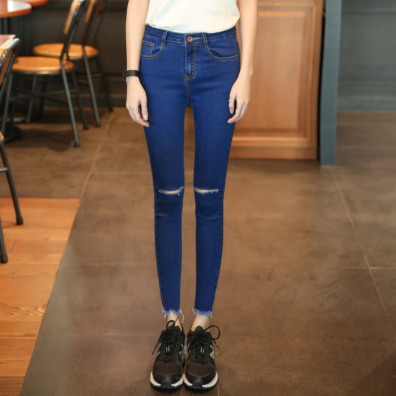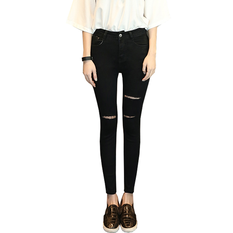 Black jeans women's tight spring 2021 new Korean high waist thin hole small feet nine-point pencil pants