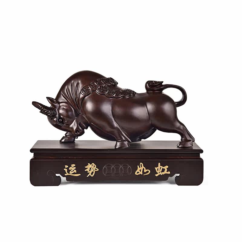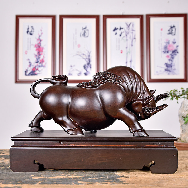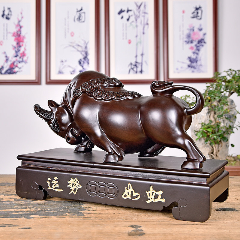 Carved cow ornaments solid wood large living room home accessories craft gifts decoration shop opening housewarming gifts