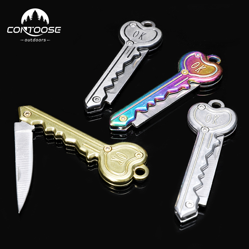 Outdoor self-defense mini knife can hang key folding knife portable stainless steel pocket key chain fruit knife