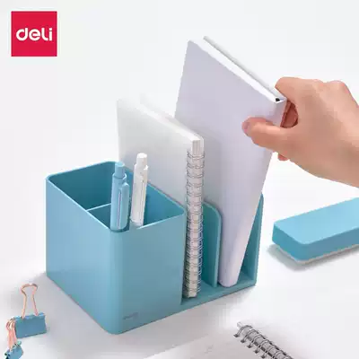 Deli pen holder bookshelf integrated Nordic creative fashion cute storage box bucket multi-function desktop book stand ins Simple modern office personality decoration pen girl student children net red