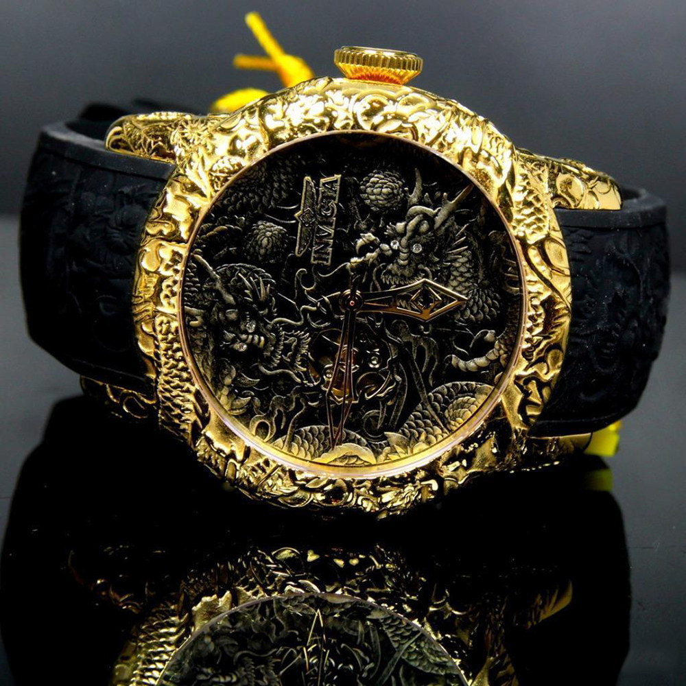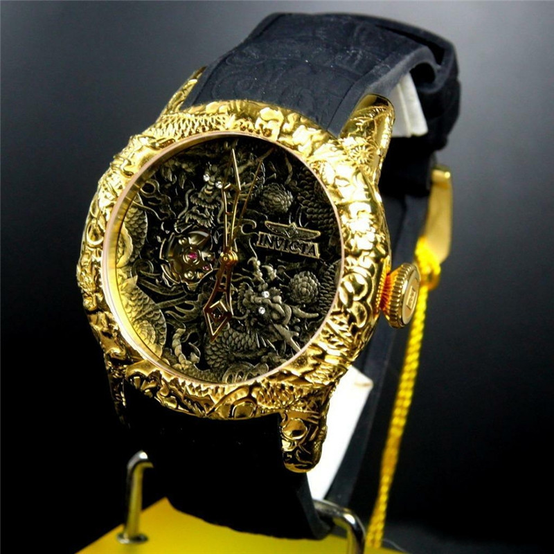 USA invicta black gold domineering dragon large dial Silicone with transparent bottom automatic mechanical men's watch