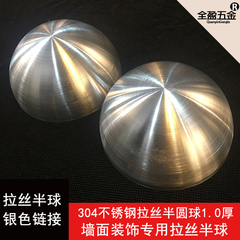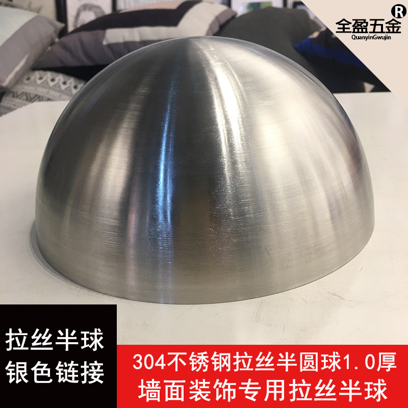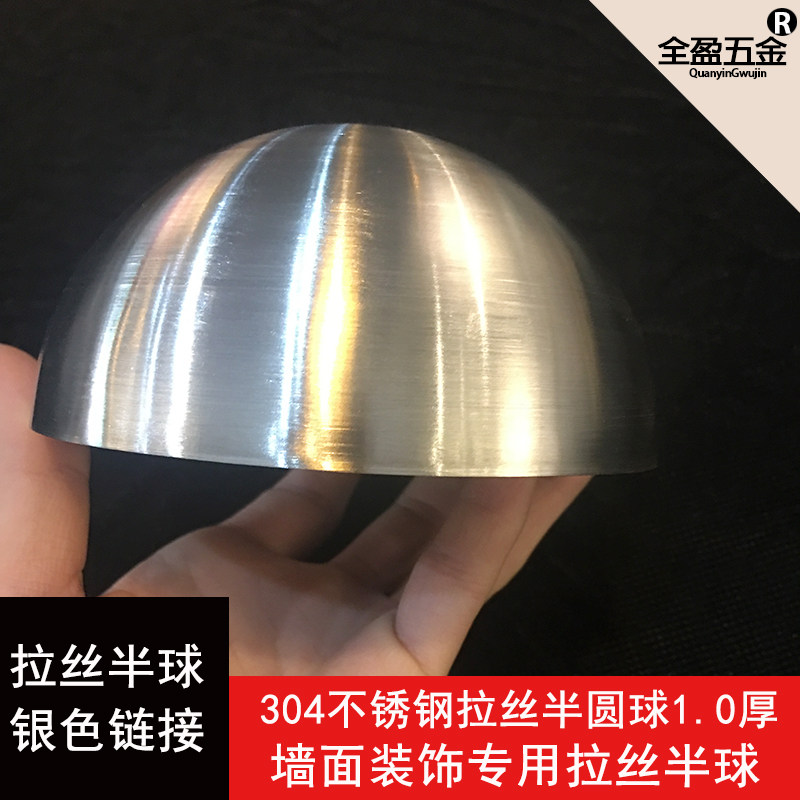 304 stainless steel wire drawing semi - round ball wall decoration metal hemisphere thicker spherical cover hollow semi - round ball