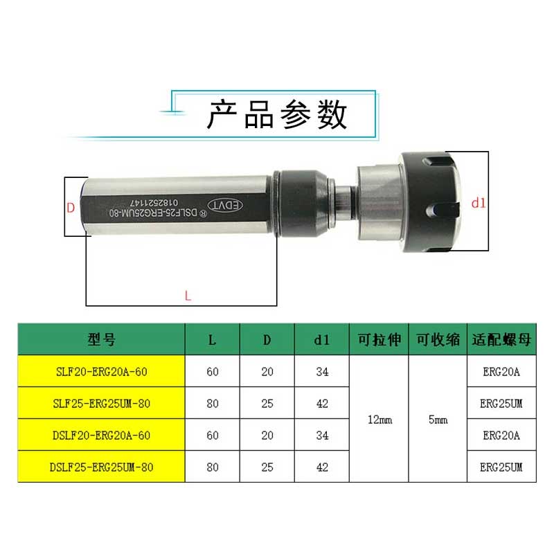 Floating tapping machine lathe tapping screw shank ER25 floating telescopic screw tapping extension rod ER20 tapping knife lever