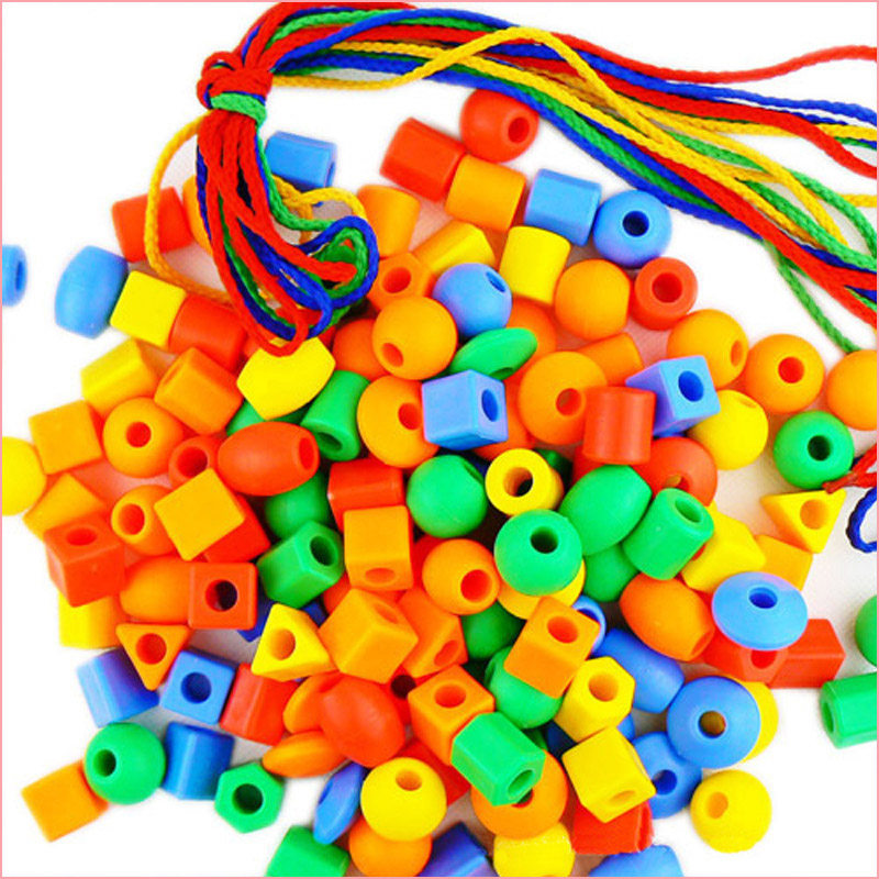 Children Plastic Building Blocks Solid Threading Small Strings Beads Necklace Handmade Kindergarten Children Intellect Puzzle Early Education Toys