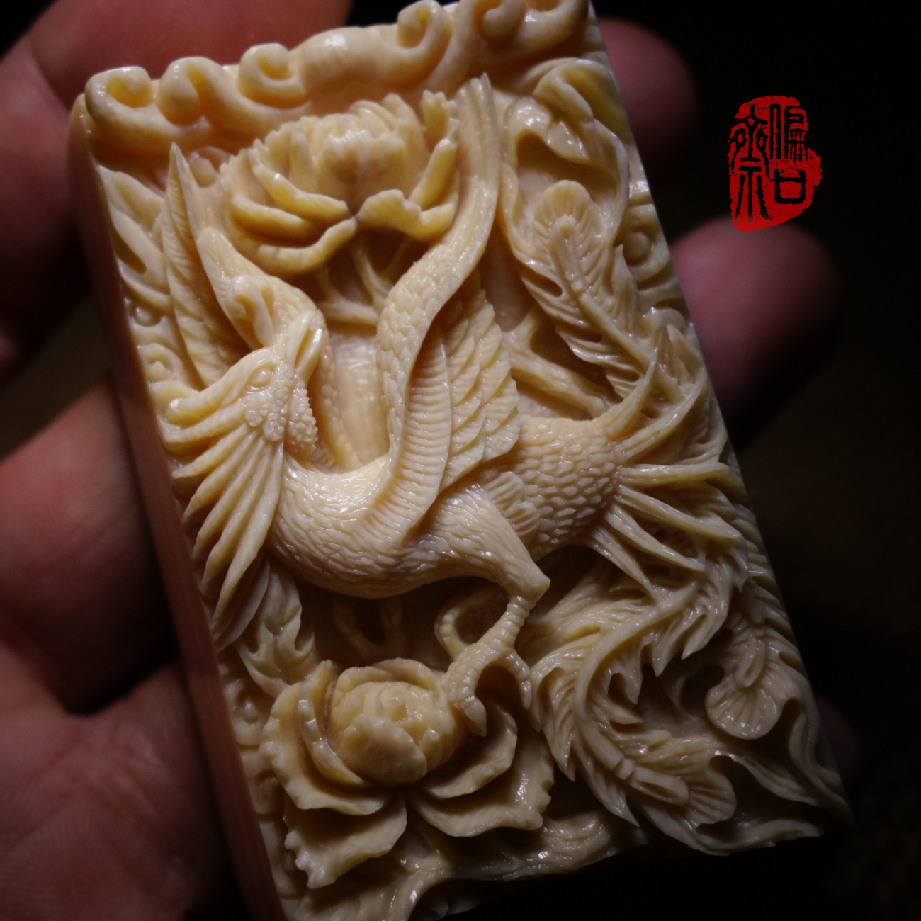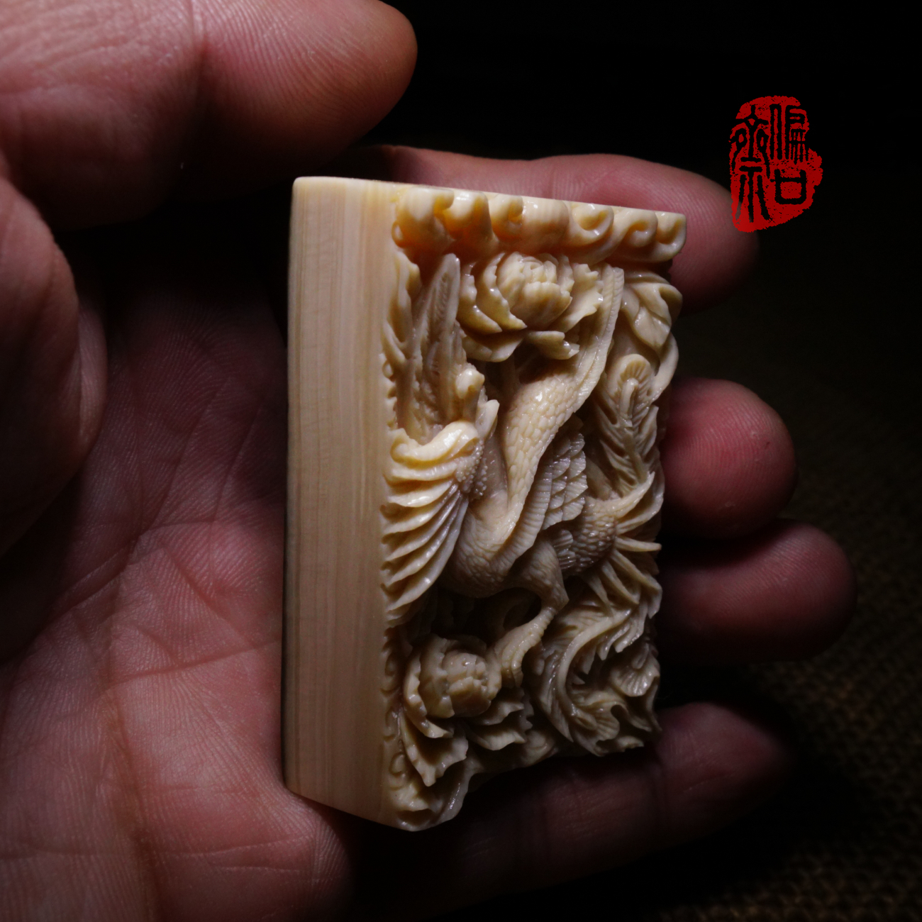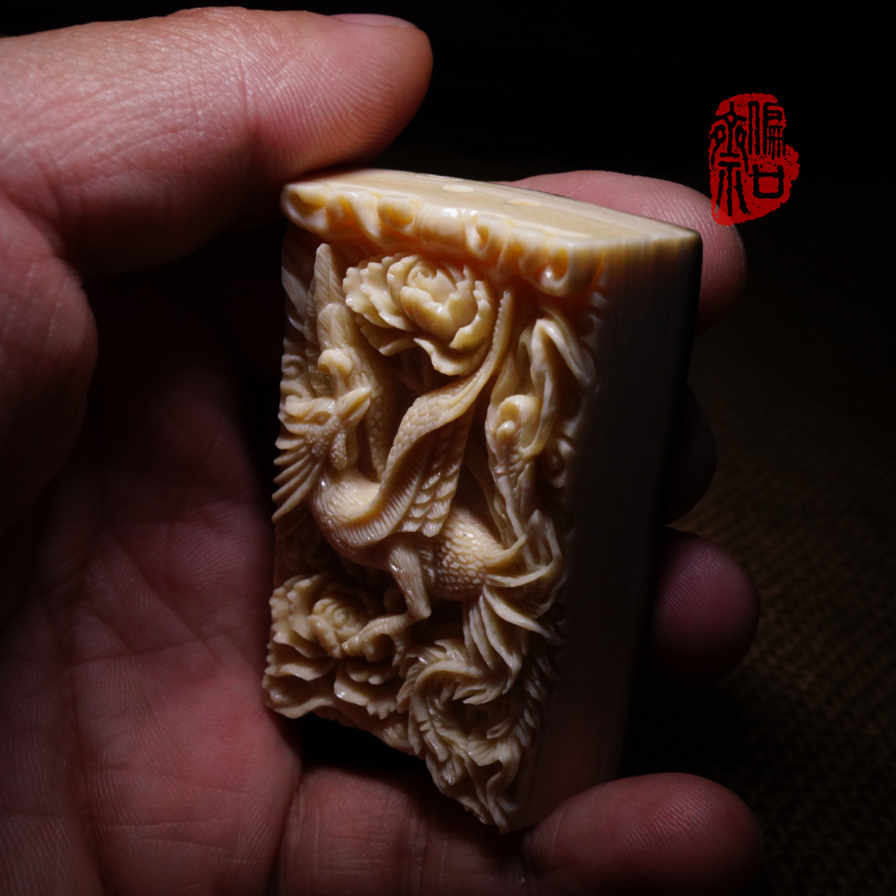 Appreciate the craft of hand - carving and mammoth carving of the Yuzhuang Phoenix Peony Peony Peony