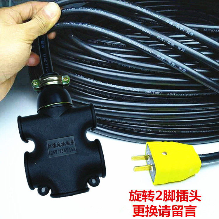 Electric vehicle charging line extension line plug-in anti-fall explosion-proof socket black extension line 10 meters 15 meters 20 meters plug board