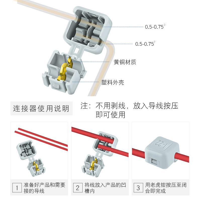 Wire-free 1-in-1-out terminal block and wire connector Tape-free 0 5-0 75 square mini 7a