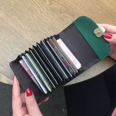 Leather card bag women's multi-card short ultra-thin cute small business card holder ID bag large-capacity card bag tide