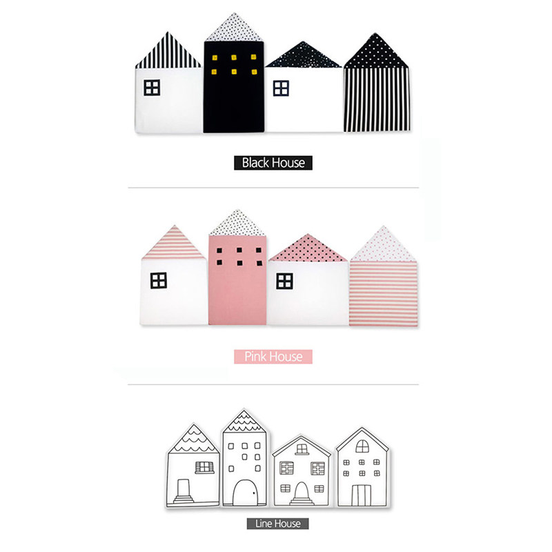 Pink series (a group of 4 small houses) black and white series (a group of 4 small houses) white series (a group of 4 small houses) green series (a group of 4 small houses) ice cream (a group of 4 small houses)