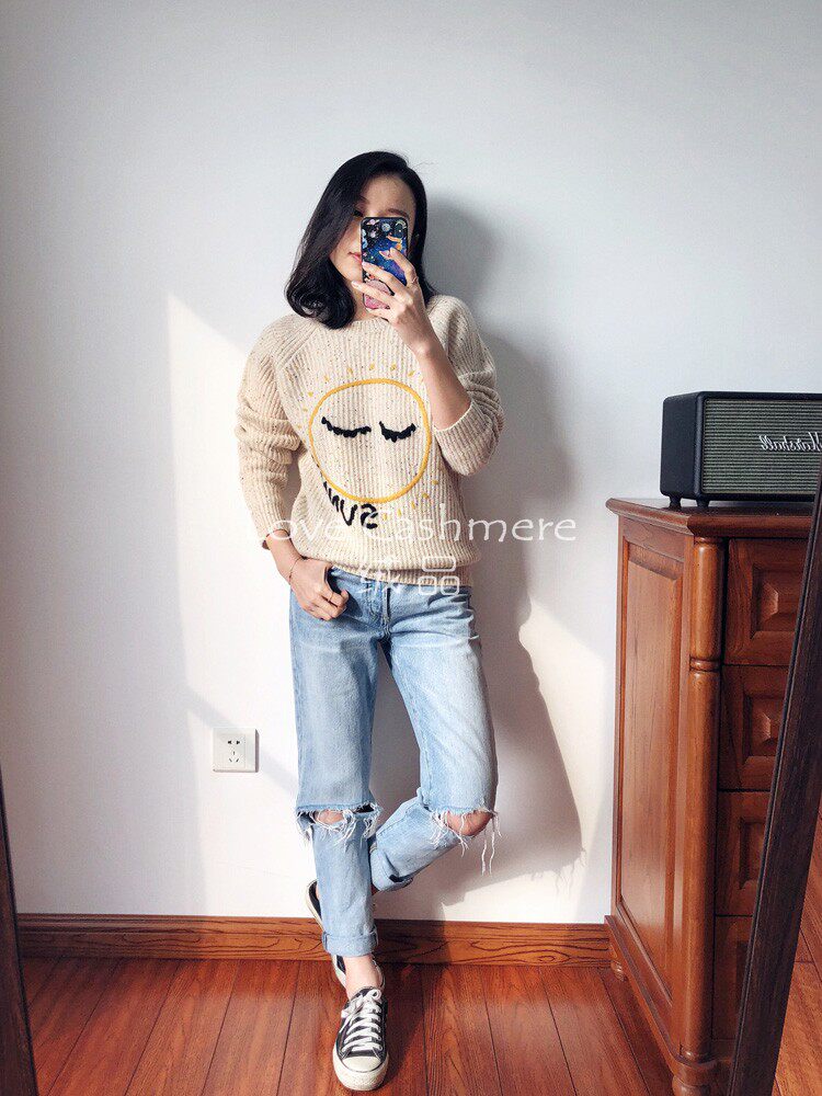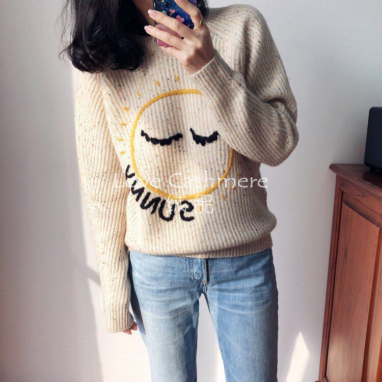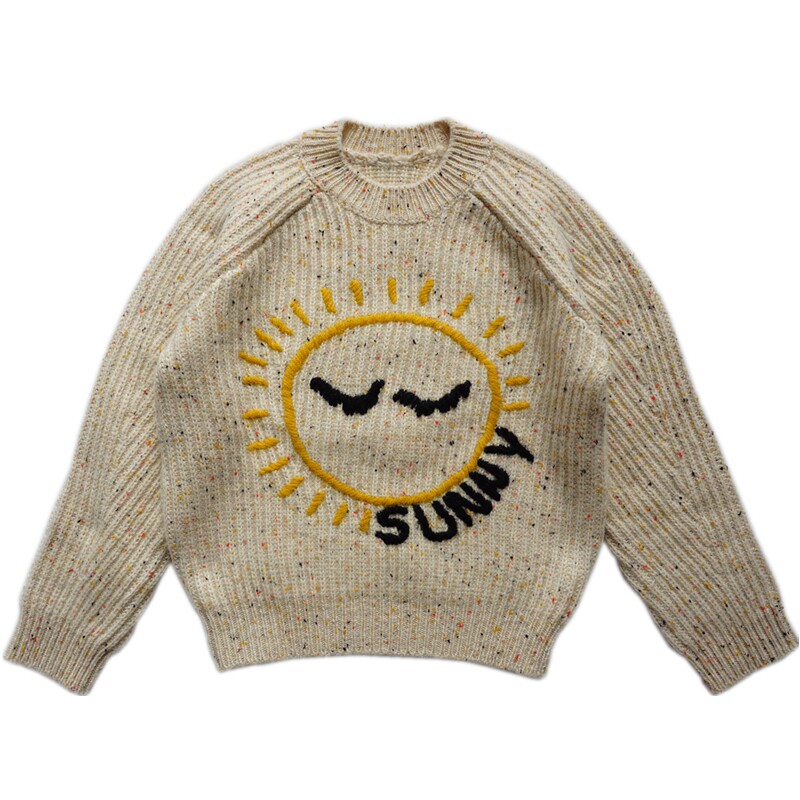 Velvet Dingding a parent-child rework embroidered cartoon Sun Cloud Dot weather pattern Loire knitted baby cashmere