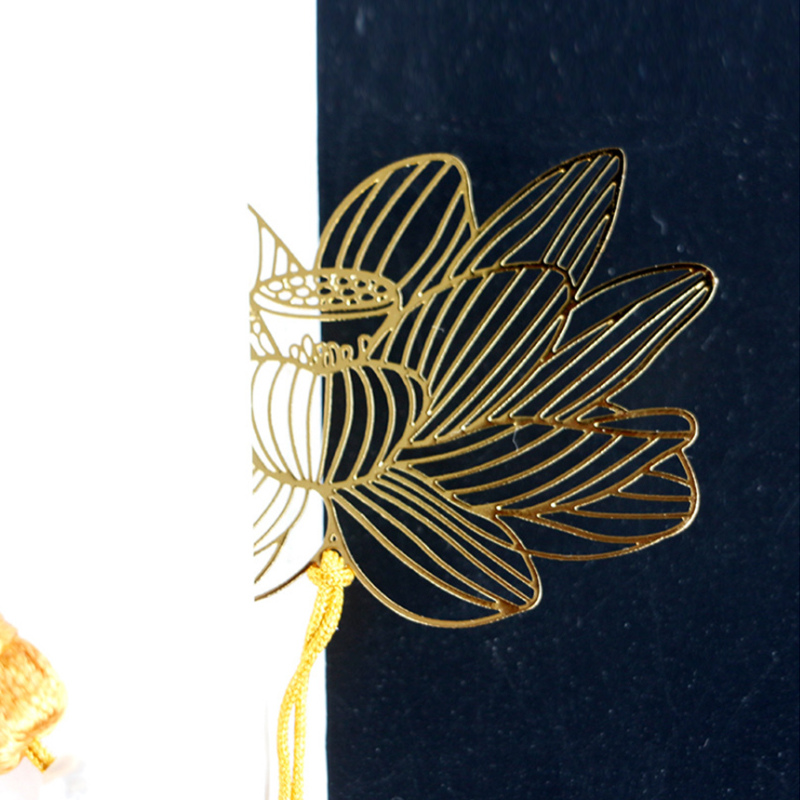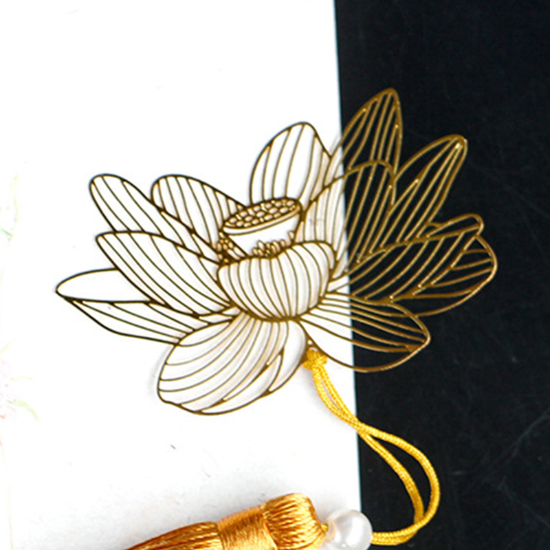 Pure Copper Lotus Flower Hollow Bookmark Exquisite Tassel Chinese Style Retro Classic Creative Zen Non-customized Gift Simple Pack