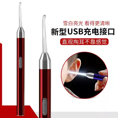 Luminous ear spoon 2-piece powder rose gold luminous ear spoon 2-piece set of local tyrant gold earspoon 5-piece usb rechargeable luminous ear spoon (red) usb rechargeable luminous ear spoon (Rose Gold) cartoon
