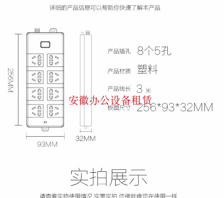 Able 18262 new national standard 3 m anti-electrocution drag wire plate 8-hole safety socket patch panel patch board-Taobao