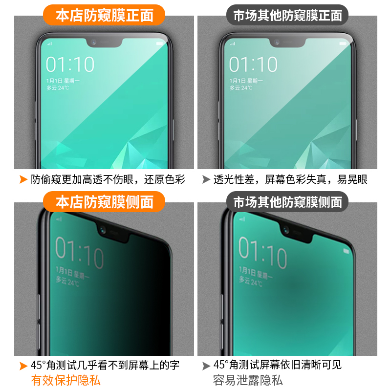 oppoa3 Tempered Film Anti-Peeping Film Oppoa5 Full Screen Cover A3 Secret-Privacy Privacy 0pp0 Mobile Phone Film A5 Semi-Backlett-Without Whiteside All-Glass Film