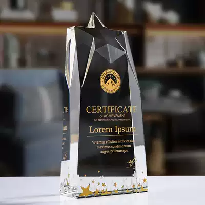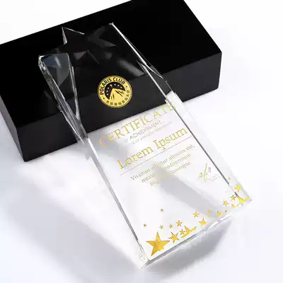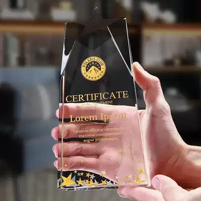 Five-pointed star crystal trophy customized high-end creative medal authorization card customized excellent employee prize lettering production
