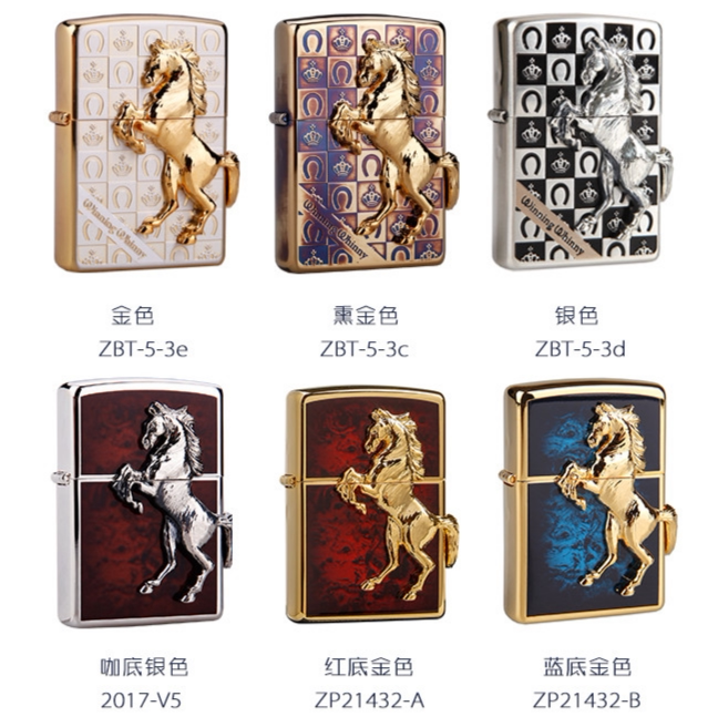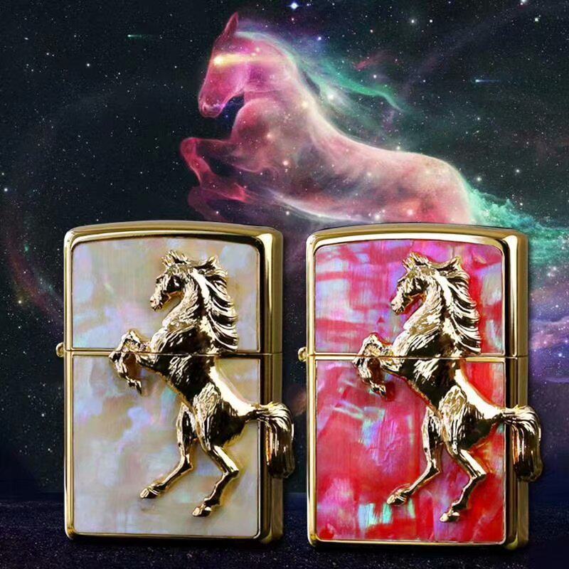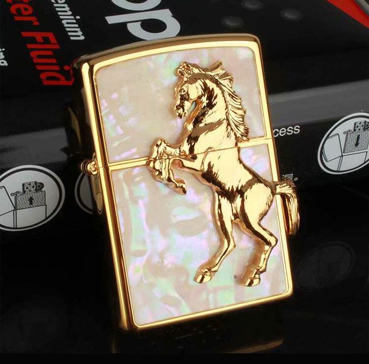 Original zipped zippo lighter pure copper gold plated colored shell gold horse with red shipping horse blueprint smoked bronze horse to success