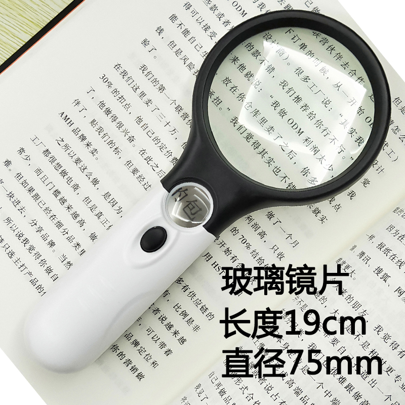 High-fold magnifying glass 10 HD for elderly portable reading children with LED light handheld enlarged lens glass lenses
