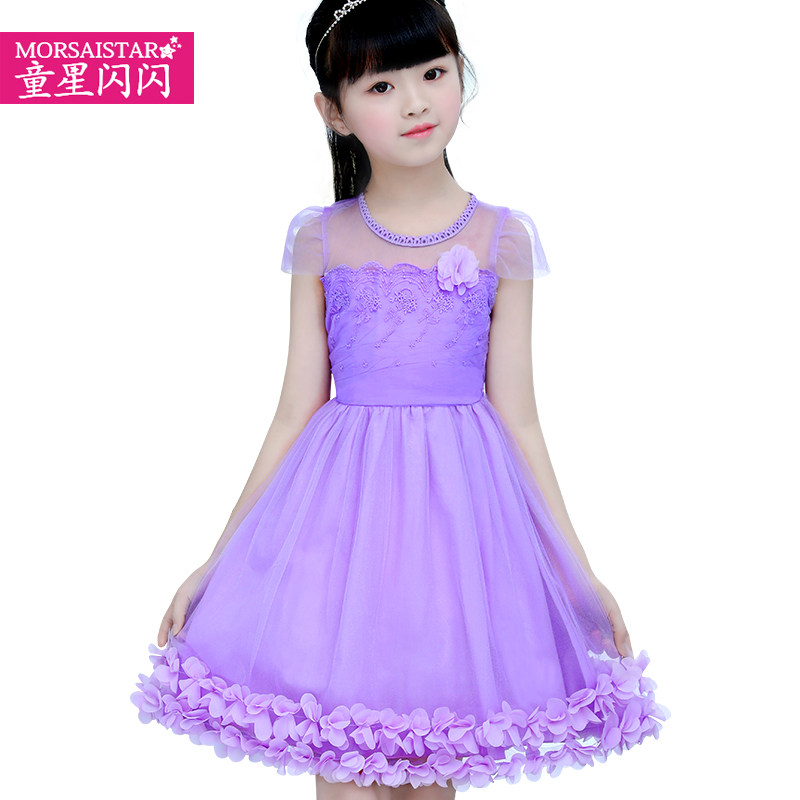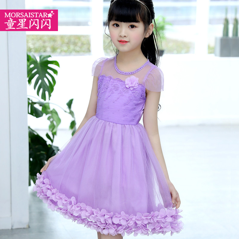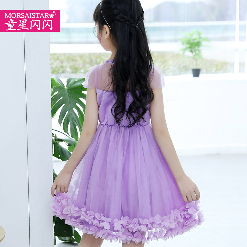 Child Stars flash Child princess dress little girl's yarn dresses CUHK Vest Skirt Summer New Foreign Dress