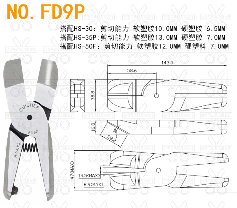 Taiwan quick take of pneumatic scissors pliers HS-10 FD2504 knife head welding feet F5 FD9PS water gap plastic gas cut