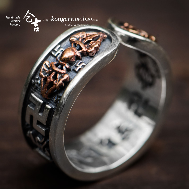 Kurayoshi handmade ring vintage carved six-character truth lovers open ring Buddhist Vajra 925 ring