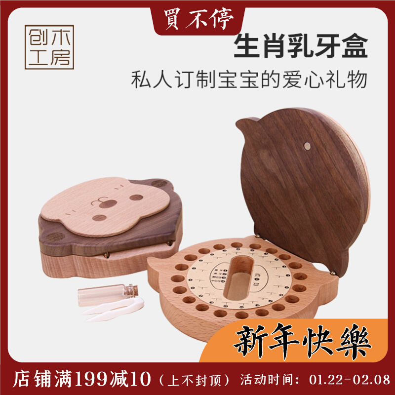 (Zodiac Tooth Box) Baby Tooth Storage Box Children's Solid Wood Tooth Box Creative Collection Tooth House Creating Woodworking Room