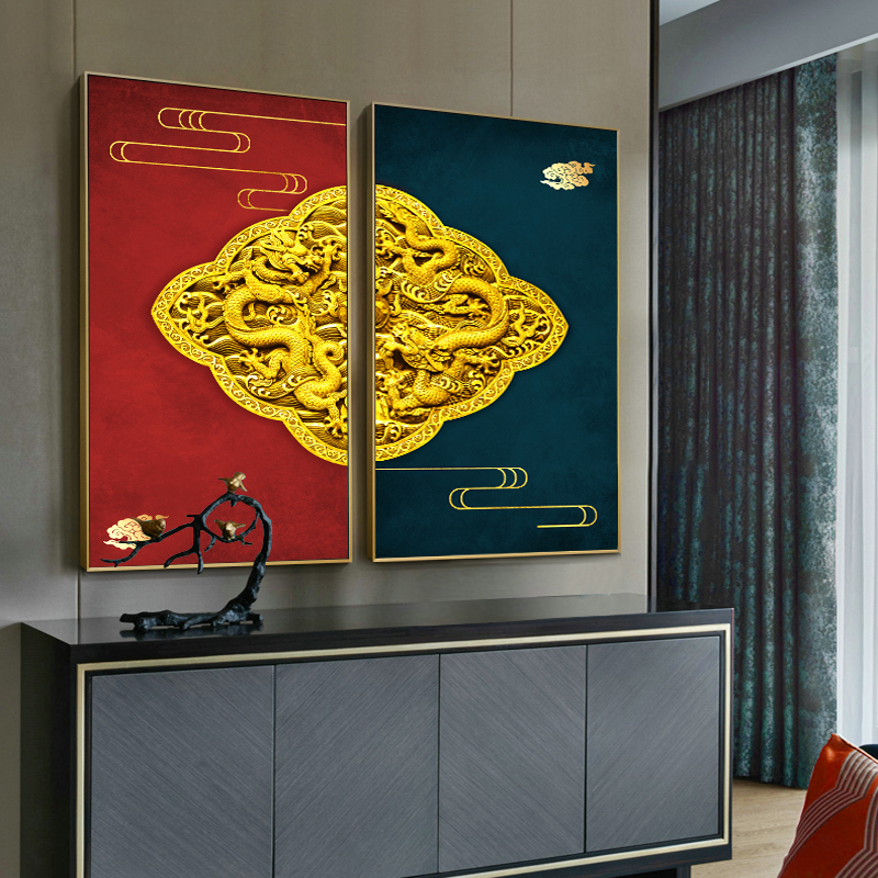 Chinese style entrance decoration painting New Chinese style red festive living room background wall painting Home corridor aisle hanging painting