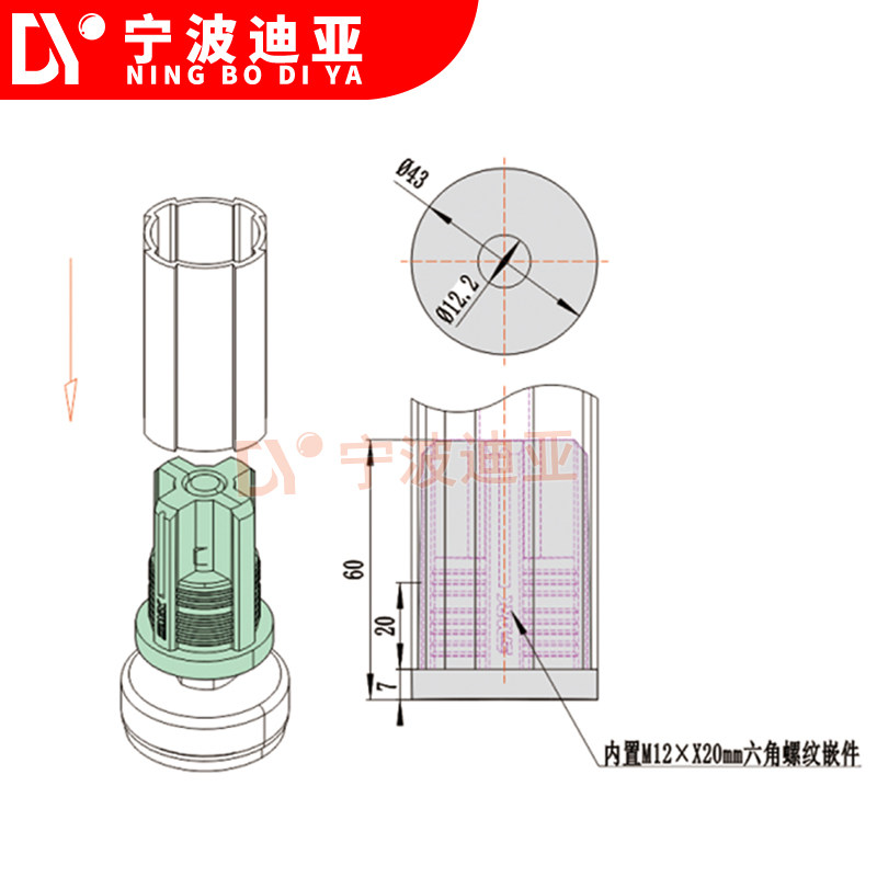 Diameter 43MM third-generation lean tube one-piece fixed foot aluminum alloy profile wire rod tube workbench accessories