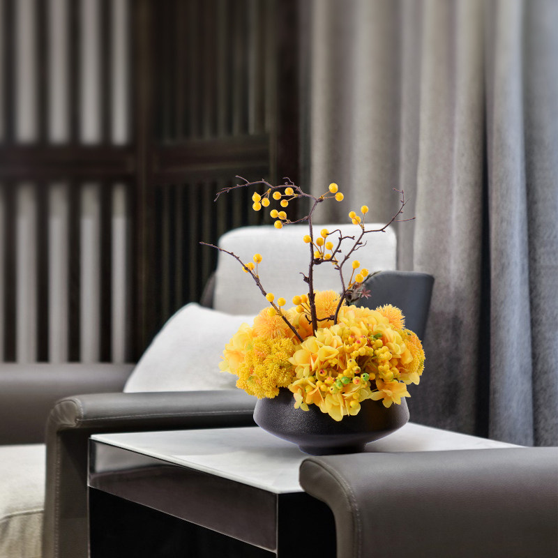 New Chinese yellow simulation overall floral bonsai decoration Living room study desktop Bo ancient frame small potted decorations