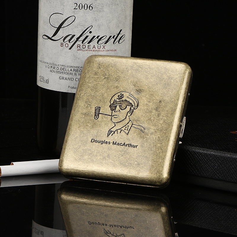 General MacArthur Antique Pure Copper Cigarette Case 20 Pack Fashion Men's Pressure-proof Cigarette Case