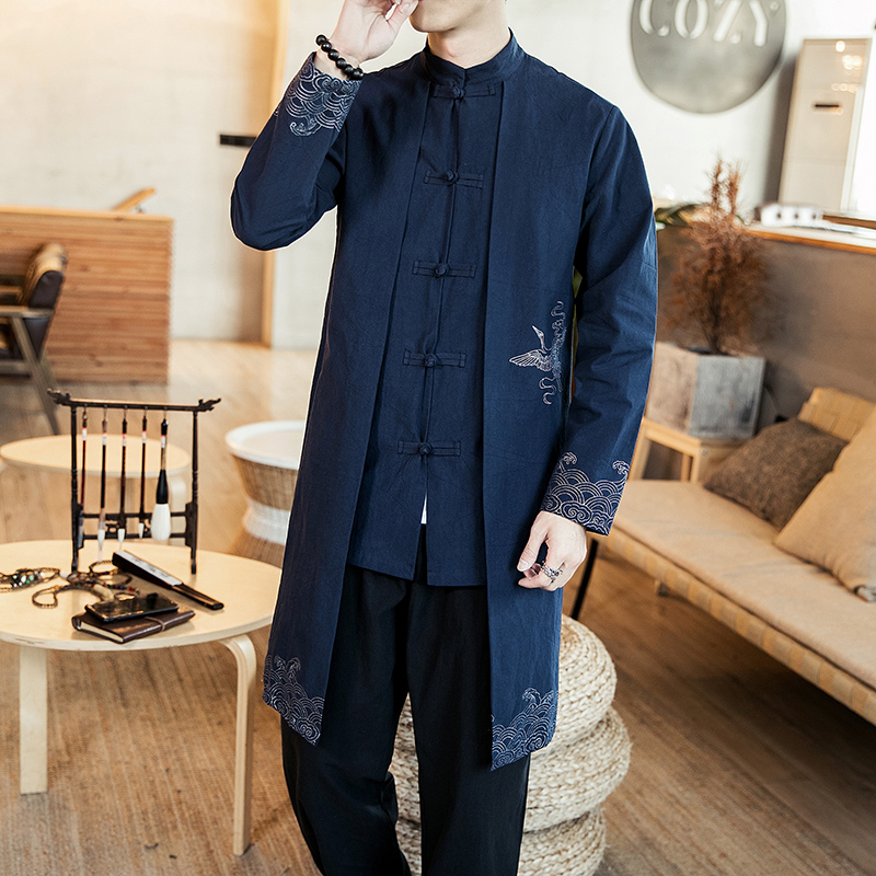 Autumn and winter Chinese style men's jacket Retro style Hanfu cotton coat Chinese longshirt Taoist robe Youth Tang suit quilted jacket tide brand
