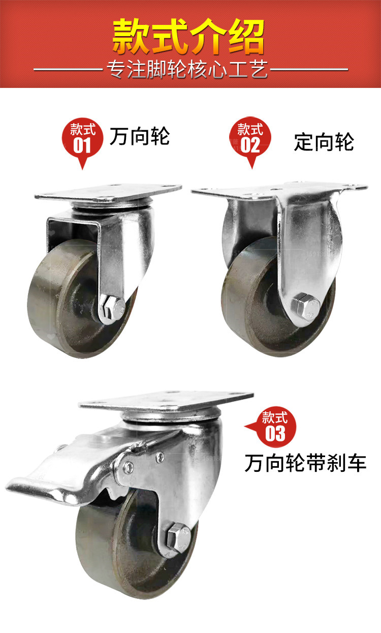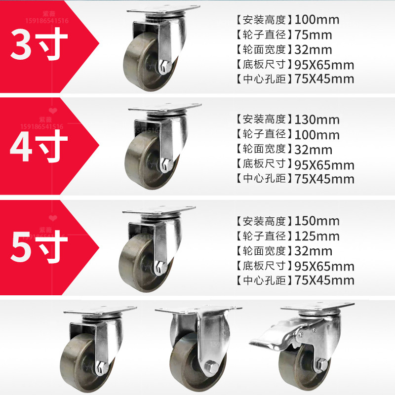 Medium-sized all-iron casters 3 inch 4 inch 5 inch universal wheel Cast iron core All-iron wheel super temperature wear-resistant oven