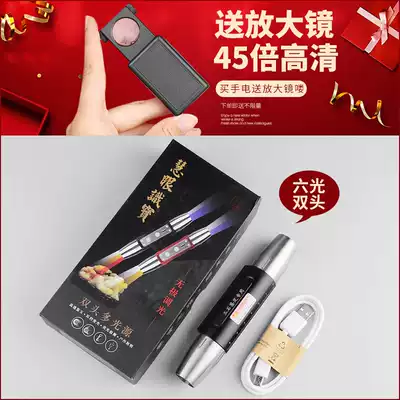 Longan double head six light source strong light light jade flashlight white yellow light 365nm ultraviolet fluorescent instrument Jade Amber antique jewelry identification special belt 45 times jewelry magnifying glass with lamp