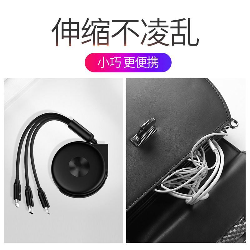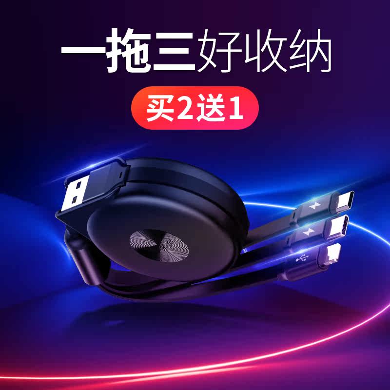 Data cable three-in-one Apple xs max charging cable one-to-three mobile phone fast charging xs multi-head 8x universal car multi-function two-in-one tow type-c Android telescopic xr6 punch 7P
