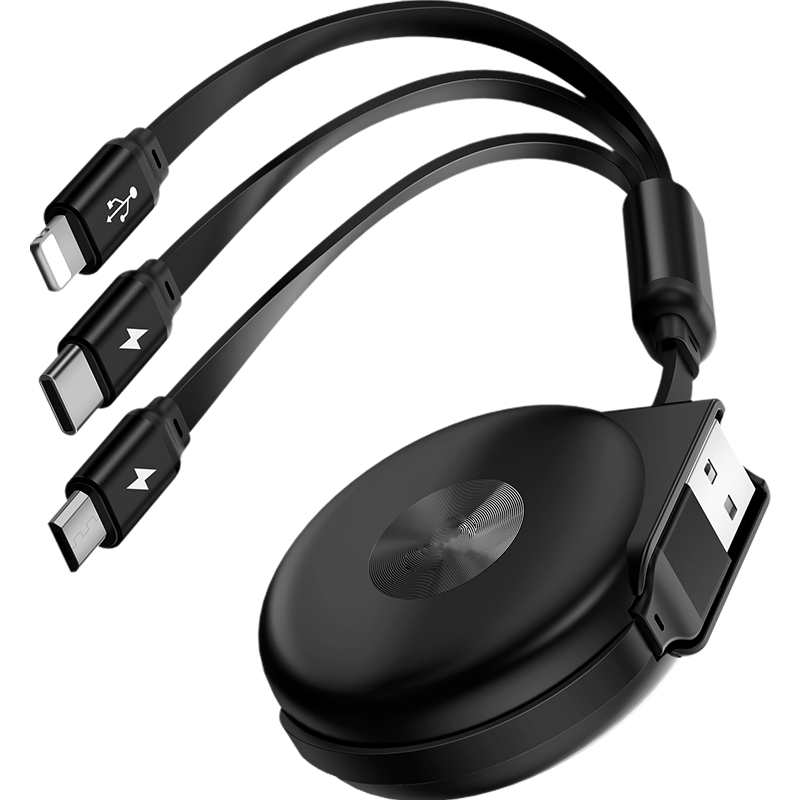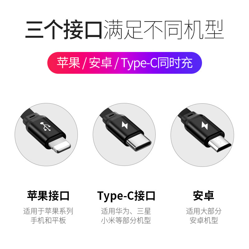 (buy 2 more than 1-collect and add cars at the same time) send a 3c certified 2A charging head cool black★One drag three★Apple Android Type-c] Fast Charge 3 at the same time