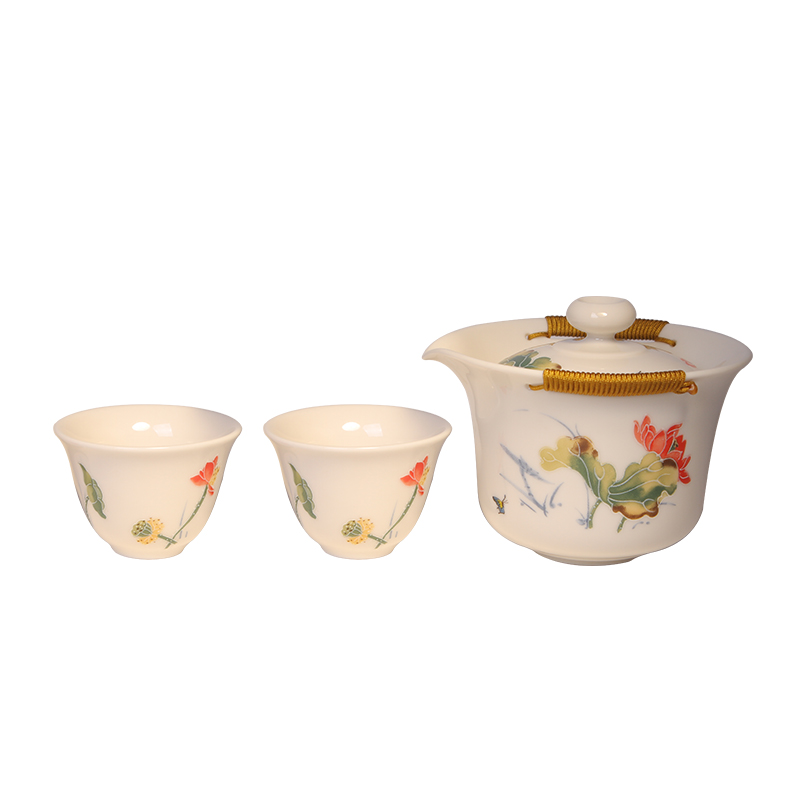 Taiwan Sanxidang ceramic new gift box relief lotus zen bubble set zen bubble two cup tea set hand gripper pot